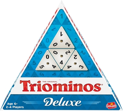Triominos Deluxe er en luksus udgave af det populære og klassiske domino spil. Triominos er et taktisk spil, som kombinere strategi og logik. Find og spil dine chancer! Placér de trekantede talbrikker strategisk og få dem til at passe sammen og scor så mange point som muligt. Spillet slutter, når den sidste spiller har tømt sin brikholder for brikker. Vinderen af spillet er den, som har samlet flest point. Triominos Deluxe kan spilles med familie og venner2-4 spiller, 40 minutter, fra 6 år.Indhold: 56 stk. Triominos brikker 4 stk. Brikholdere 1 sæt spilleregler