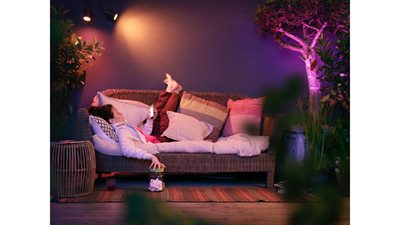 Med Philips Hue-udendørsbelysning er der ingen grænser for magien. Leg med 16 millioner farver og alle nuancer af hvidt lys for at skabe den ønskede effekt. Fremhæv genstande, træer eller stier, så dit område skiller sig ud. Brug Hue-appen til at gemme dine foretrukne lysindstillinger og hent dem ned, når du vil, med et tryk med fingeren.